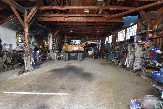 Über ca. 200 m² große Halle, die noch erweitert werden kann und bereits vorhanden ist. Ehemaliges Sägewerk und danach als Werkstatt und Unterstellplatz genutzt.